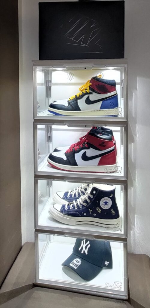 Fantastic display cases for sneakers and more… Easy to assemble and with even lighting… Very sturdy, ideal with an excellent power supply system for both vertical and side-by-side positioning… Fast shipping