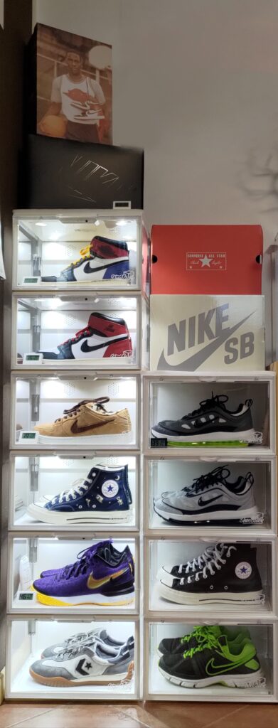Sizing: Our sneaker containers are large enough to store most types of shoes, from high-tops to high-heels up to size UK13 . Dimensions: 36cm (14.2″) x 28cm (11.4″) x 22cm (8.7″)